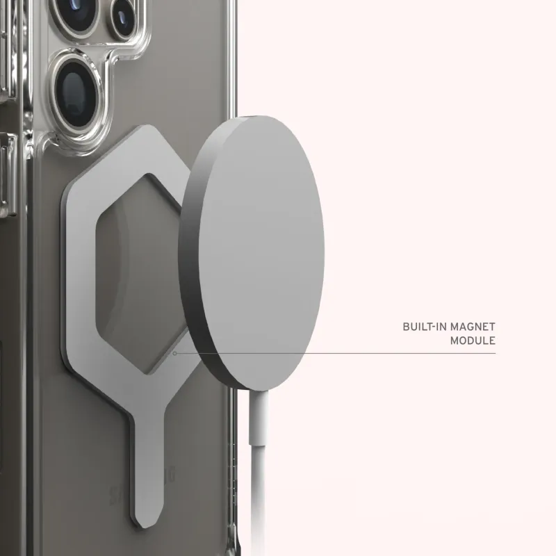 The Plyo Series truly is clearly rugged – a perfect blend of reliable military-tested drop protection and a crystal clear finish, creating beautiful everyday armor and security for your phone while allowing your device color to shine through. With anti-yellowing properties, this edition is engineered to go even further than the last. Featuring a lightweight construction, combining a TPU shock-absorbing frame with a PC backplate, providing dependable protection without adding bulk to your device. The trusted UAG armor shell and impact resistant soft core ensure your phone is safeguarded against accidental drops and impacts. This case is designed with practicality in mind and includes scratch-resistant skid pads and air-soft corners, offering cushioning impact and additional protection. With the powerful built-in magnet, you can enjoy seamless wireless charging. Experience premium heavy-duty protection with an eye-catching design.